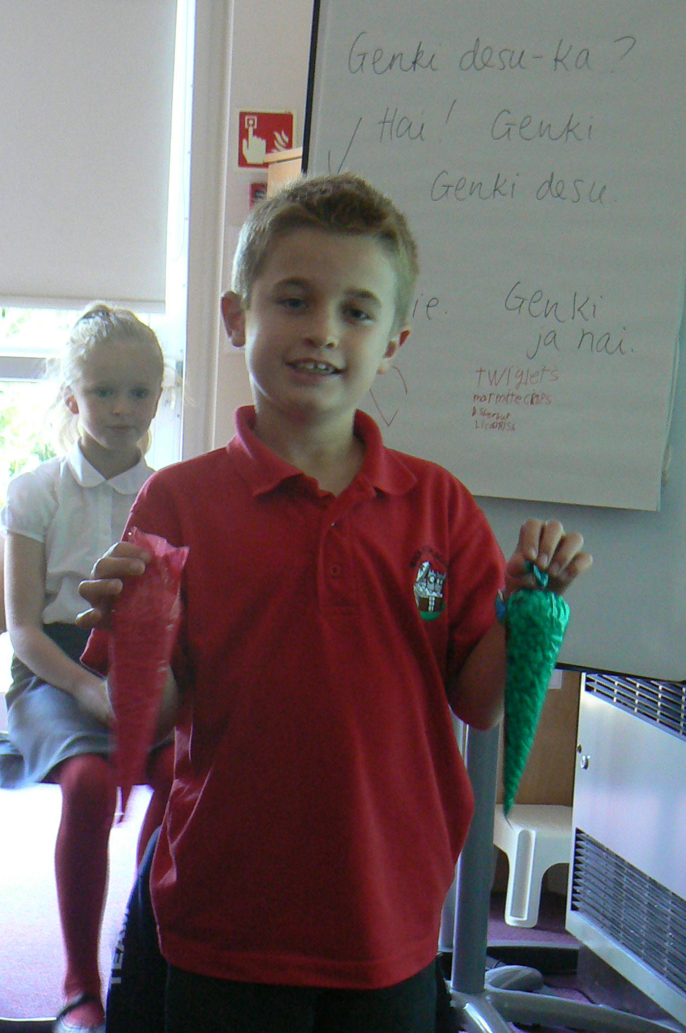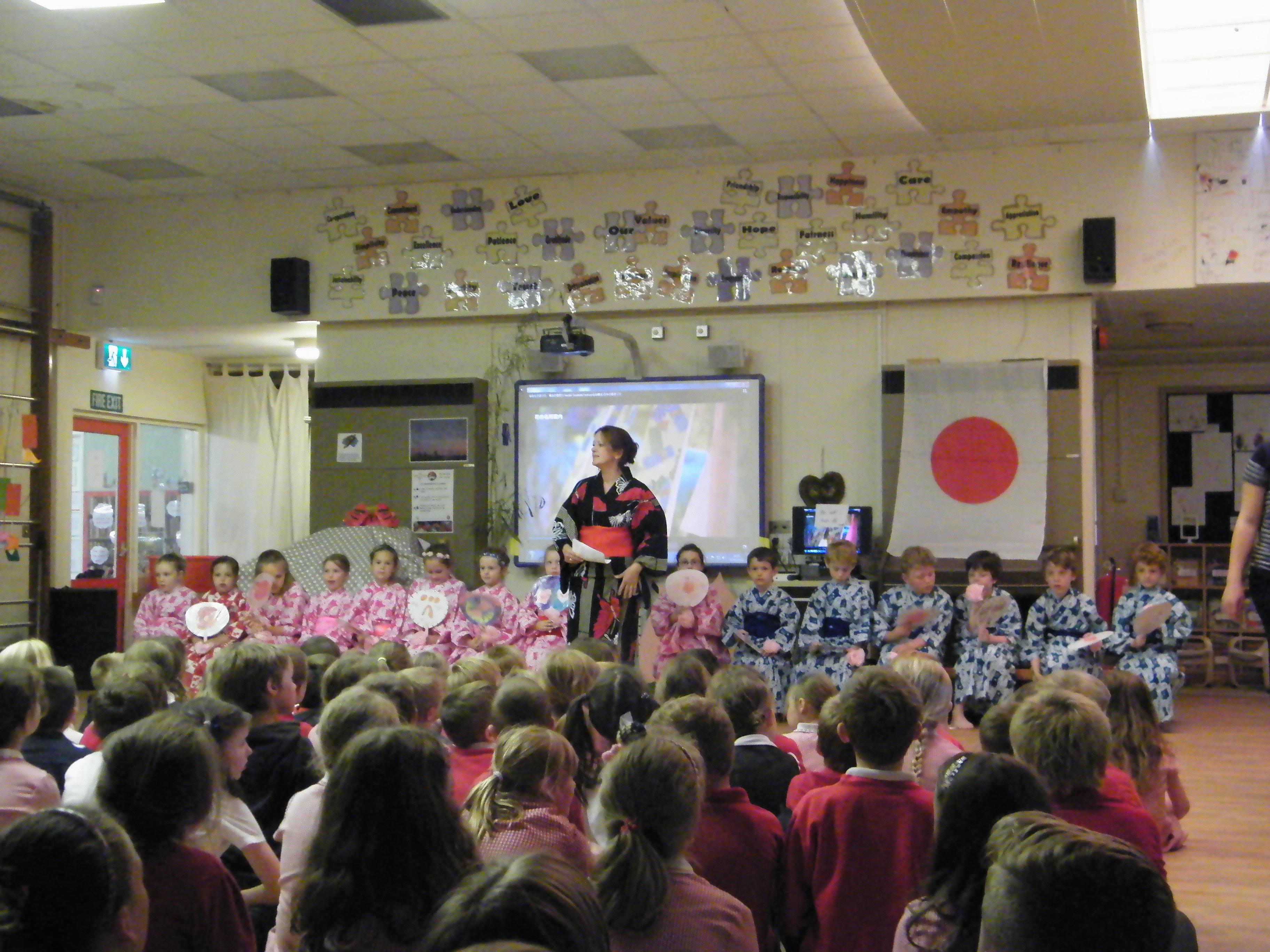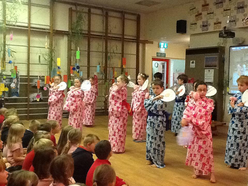 We'd like to thank Mrs Terry, whose support in all of our Japanese language and cultural activities this year has been so much appreciated. We are able to employ Mrs Terry, and have such an exciting Japanese celebration, because we receive generous funding for Japanese from the Japan Foundation in London. Many of the resources that we use in our Japanese lessons are also provided for us by the Japan Foundation, through the hard work of their language advisors. The kimonos and a box of Japanese artefacts was kindly loaned to us by the Japanese Embassy. Arigato gozaimasu! (Thank you very much!)