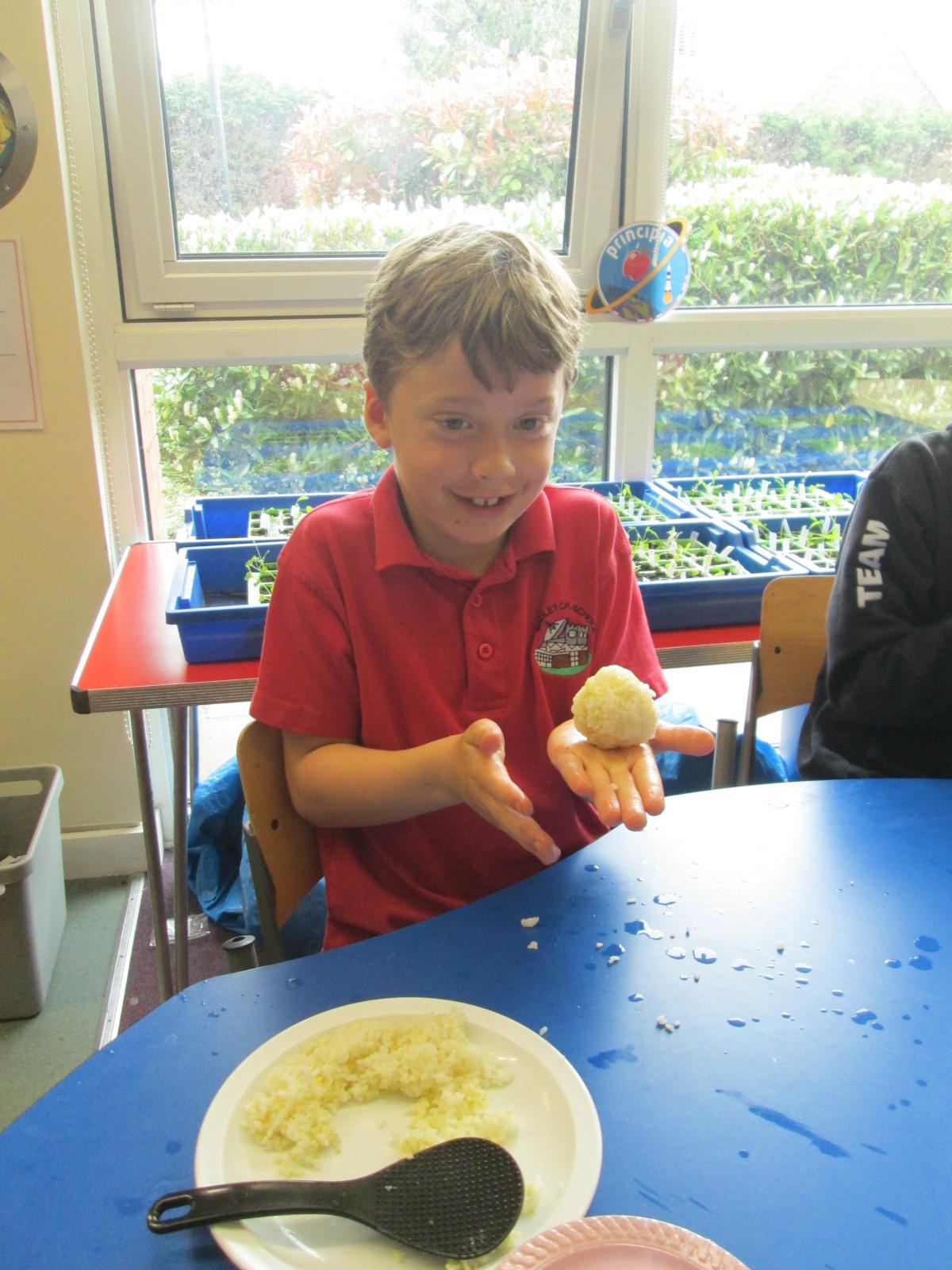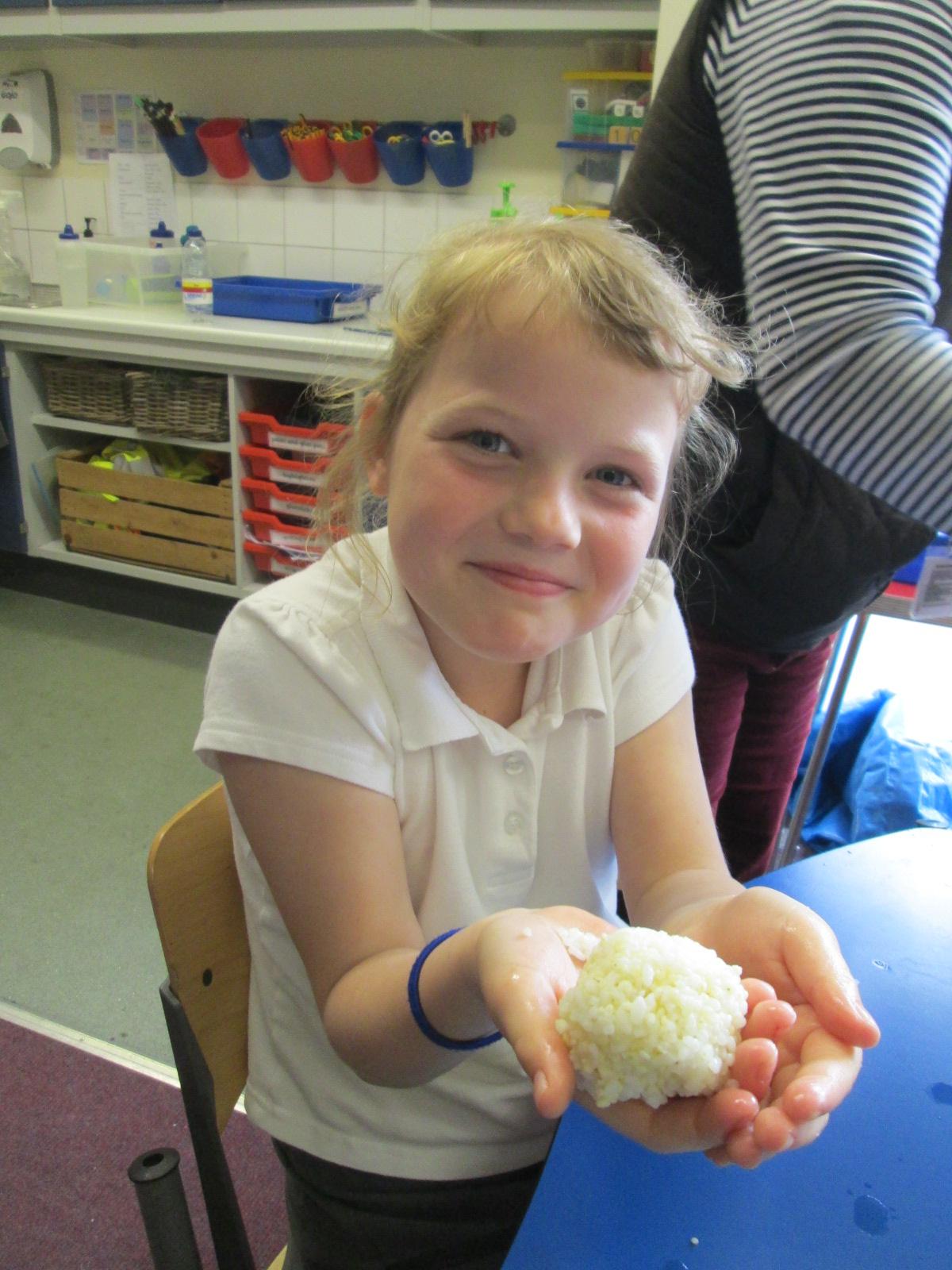 Making onigiri (Japanese rice balls) in Year 2 Japanese Club