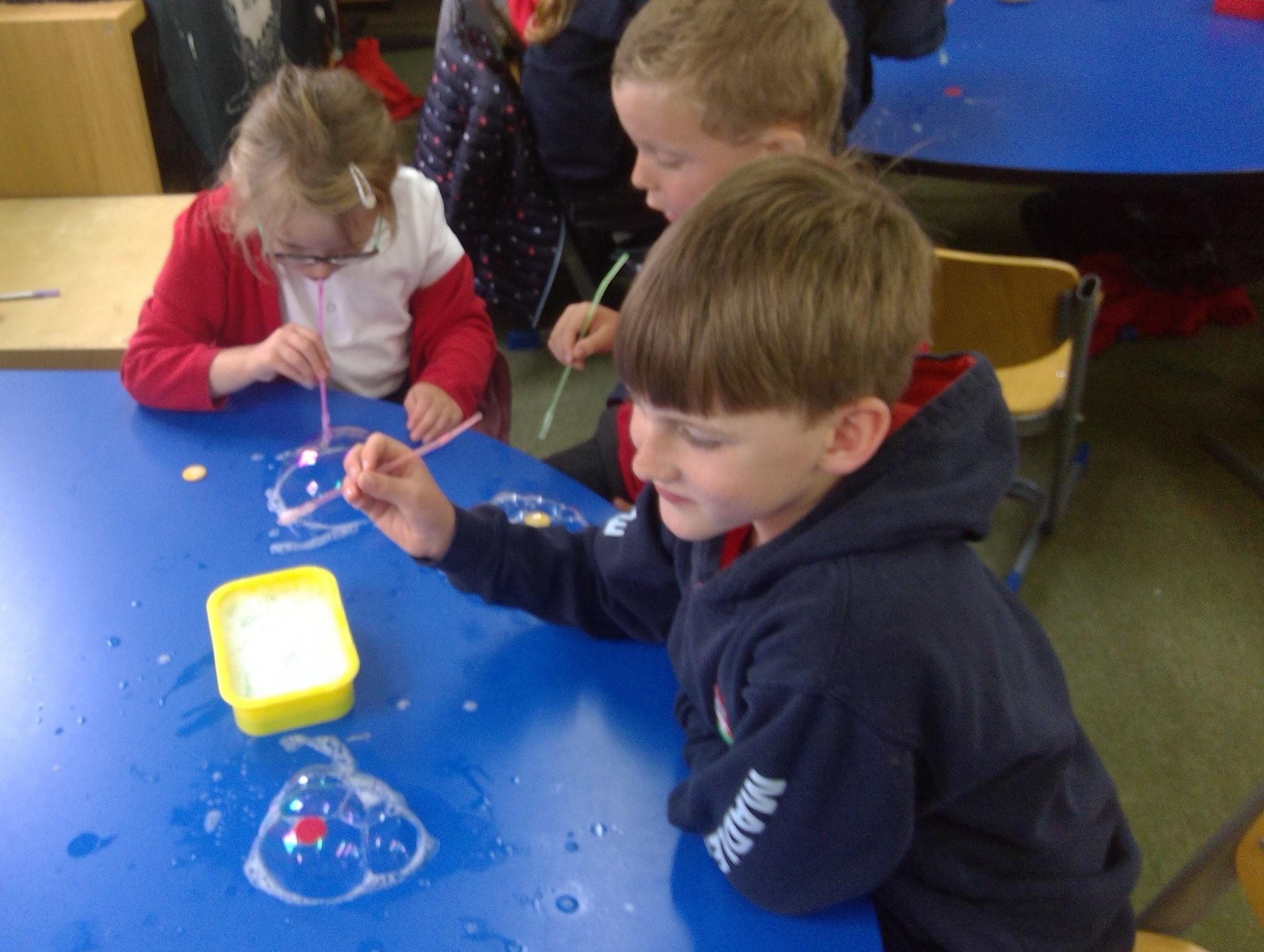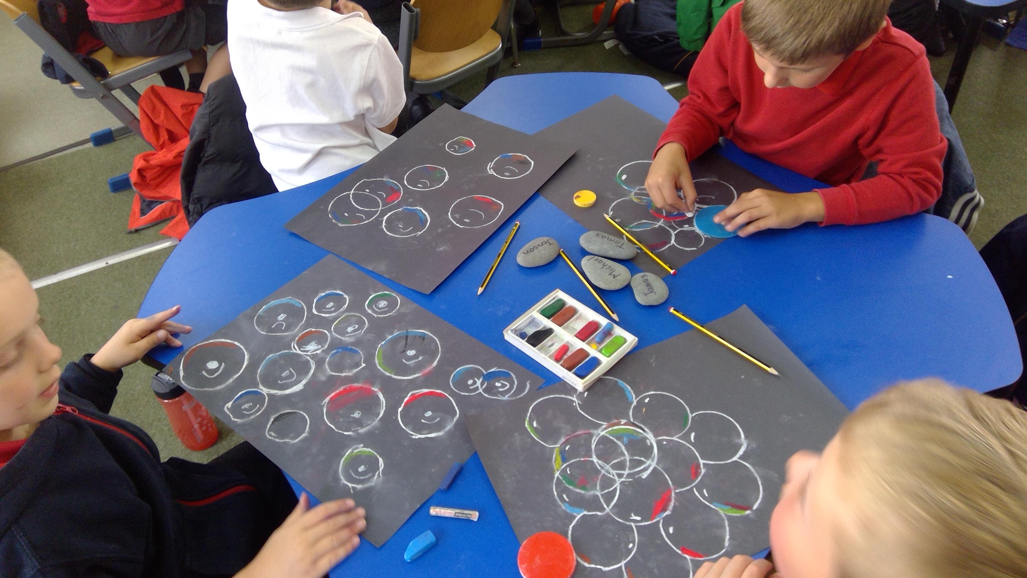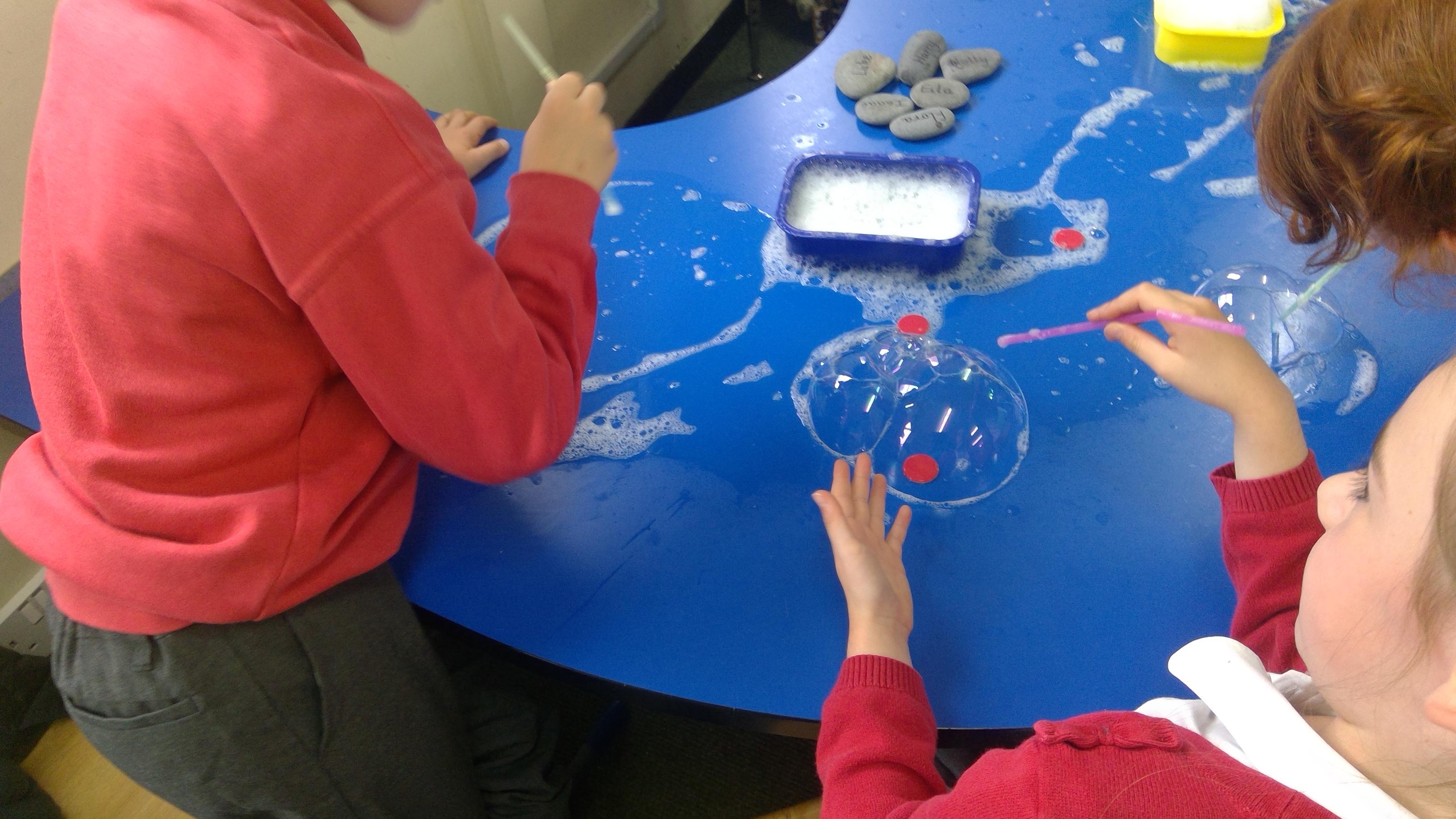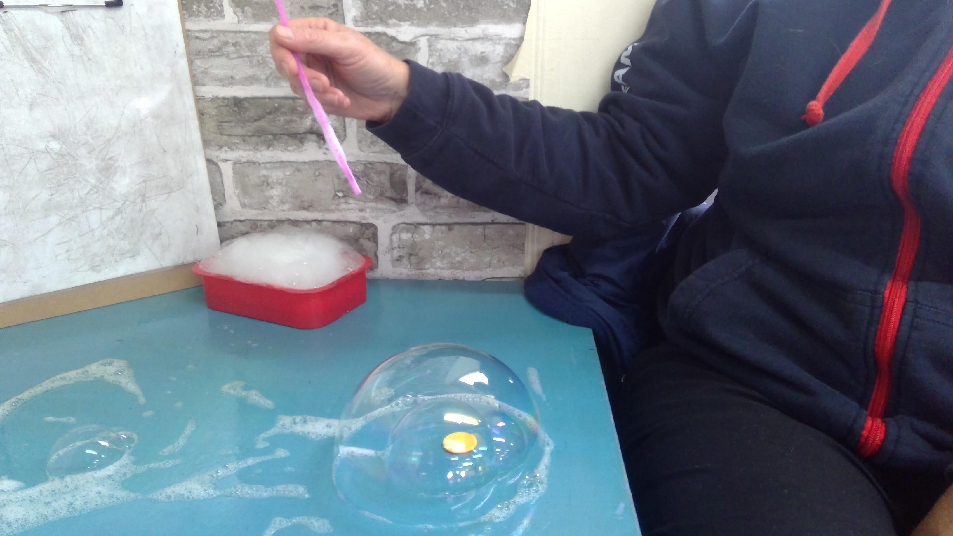 Bubble art with water and washing up liquid