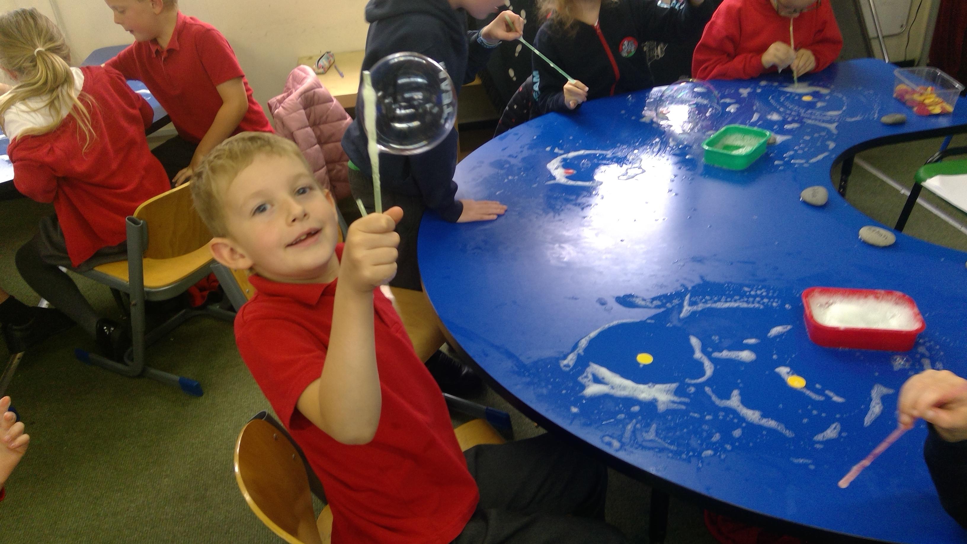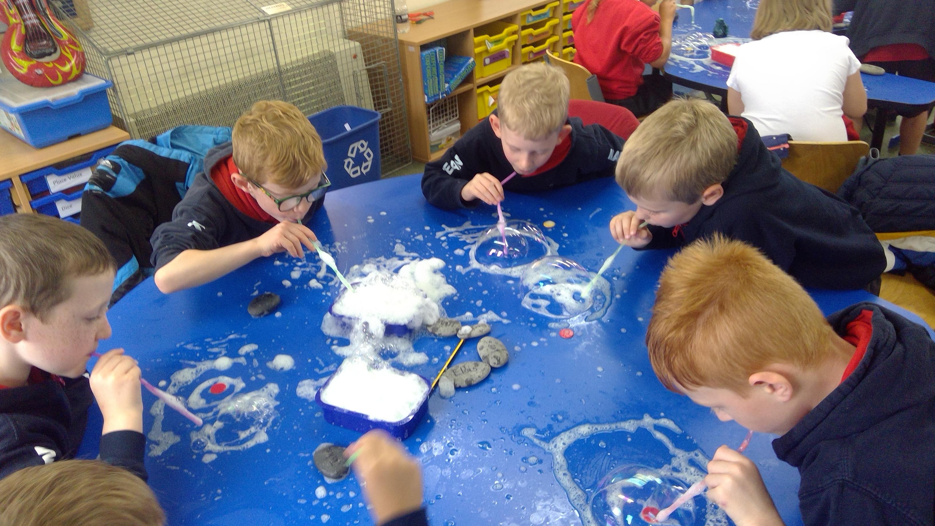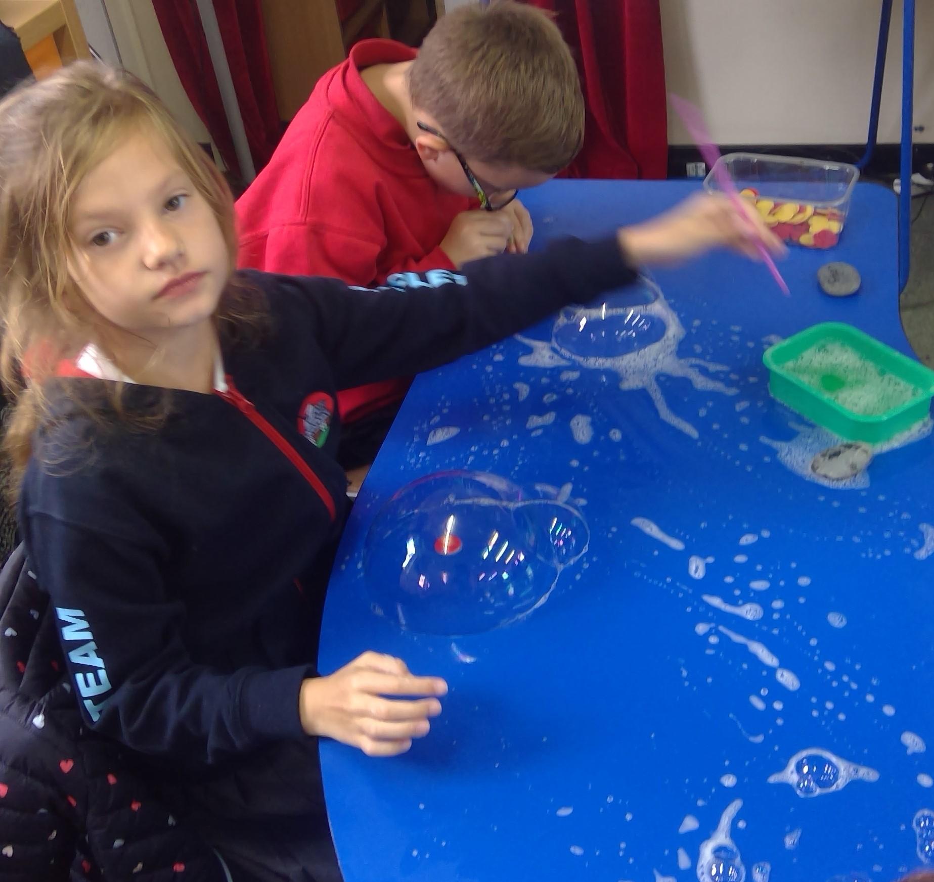 Bubble art with water and washing up liquid