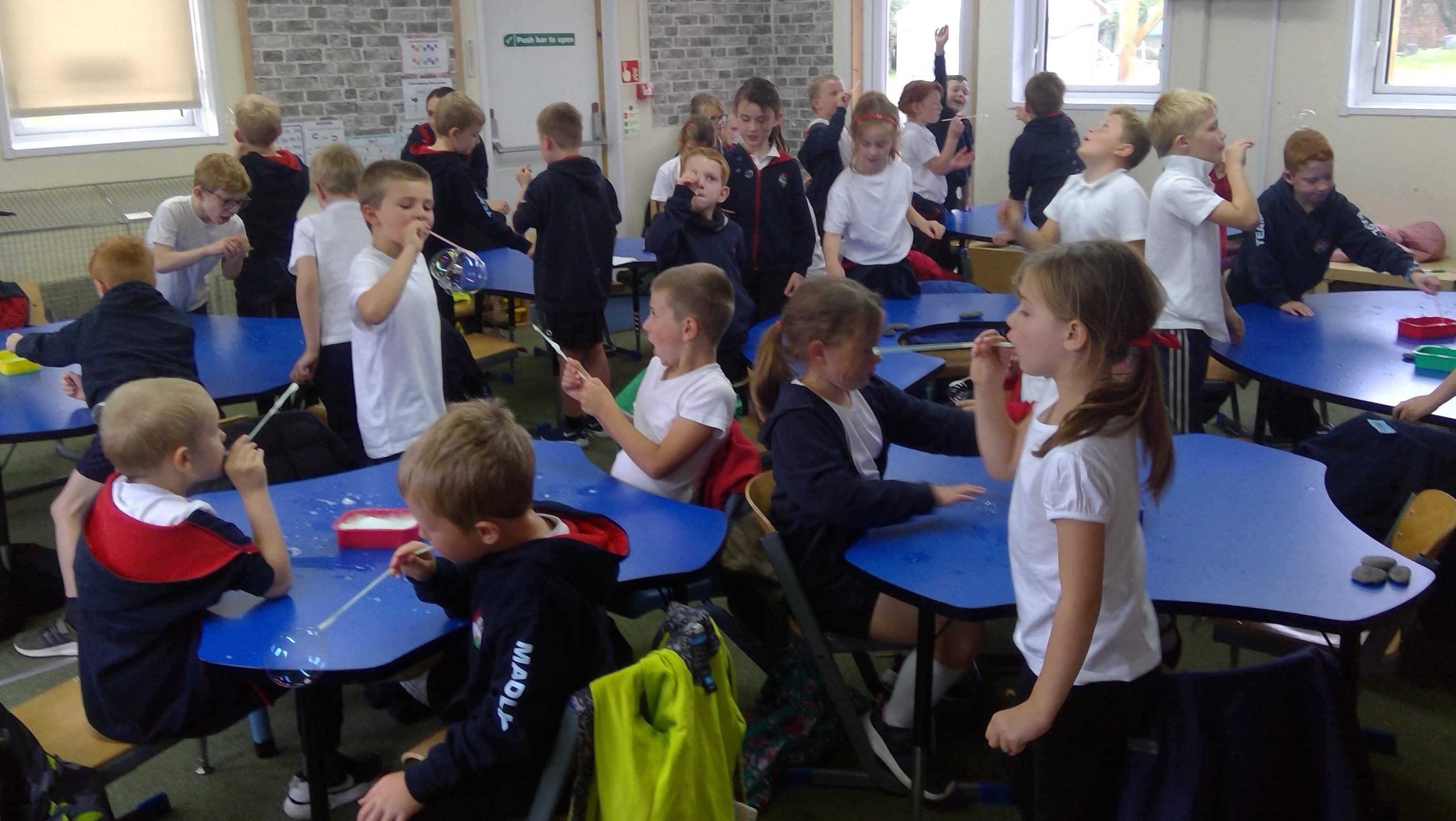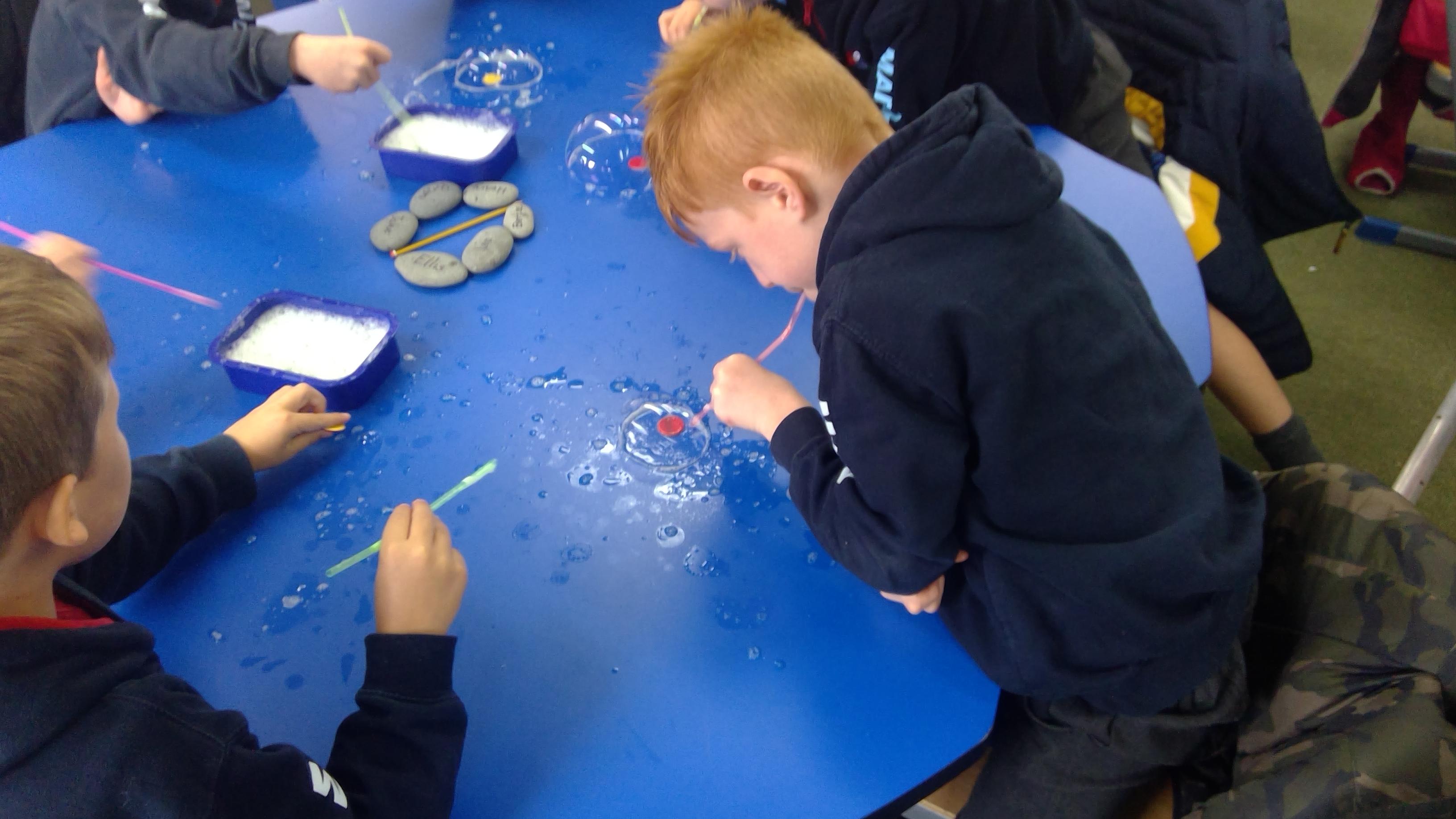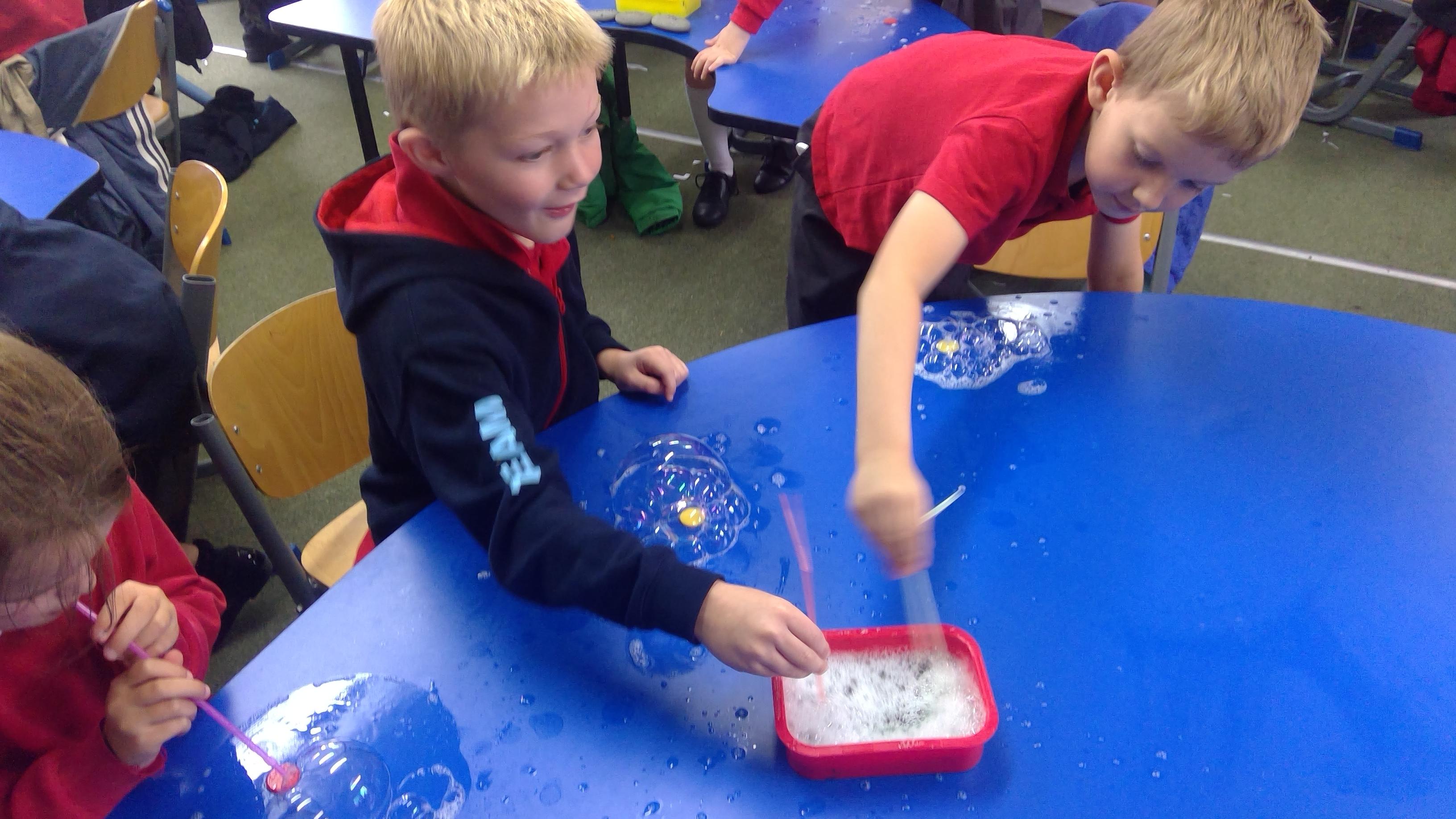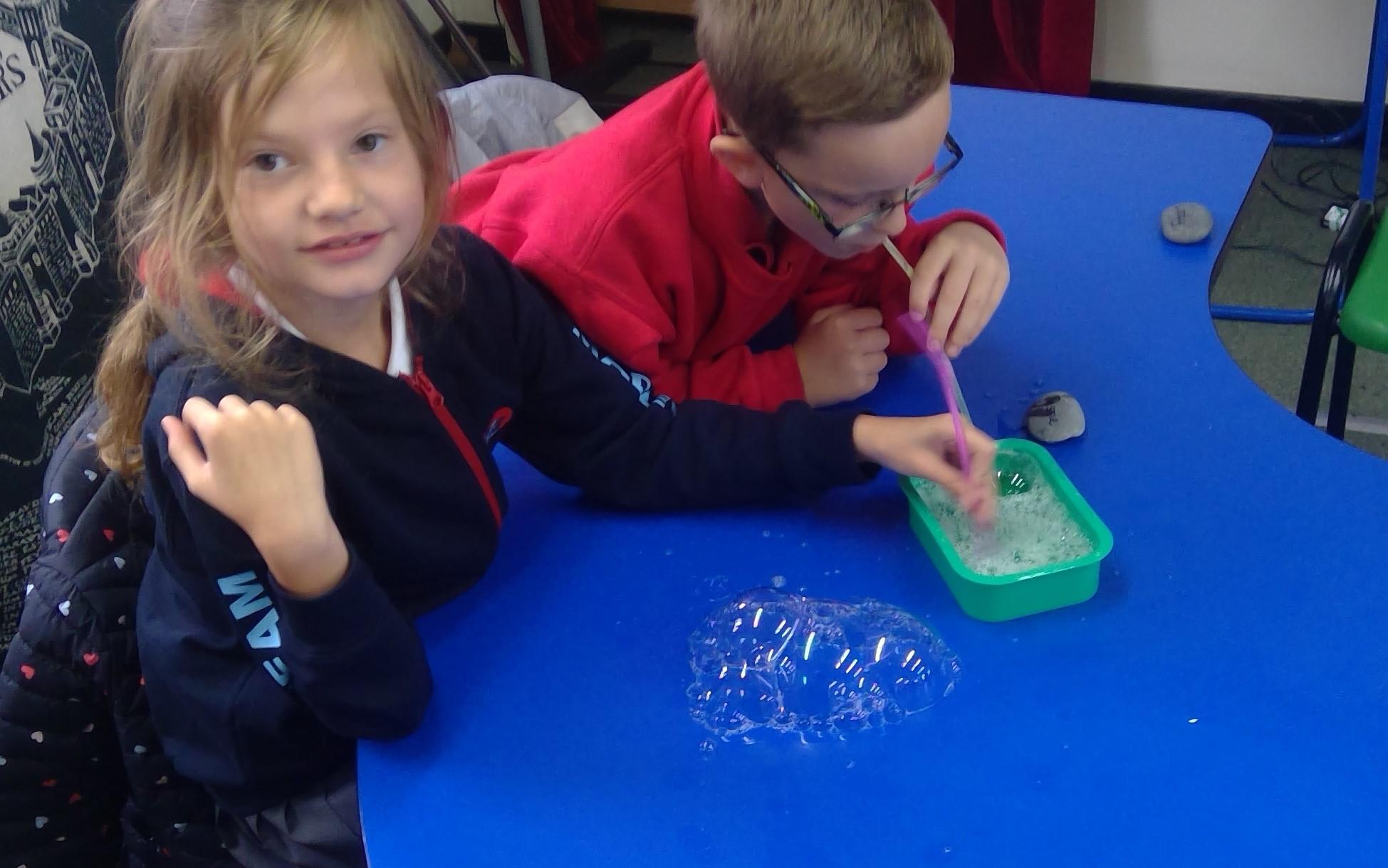 Bubble art with water and washing up liquid